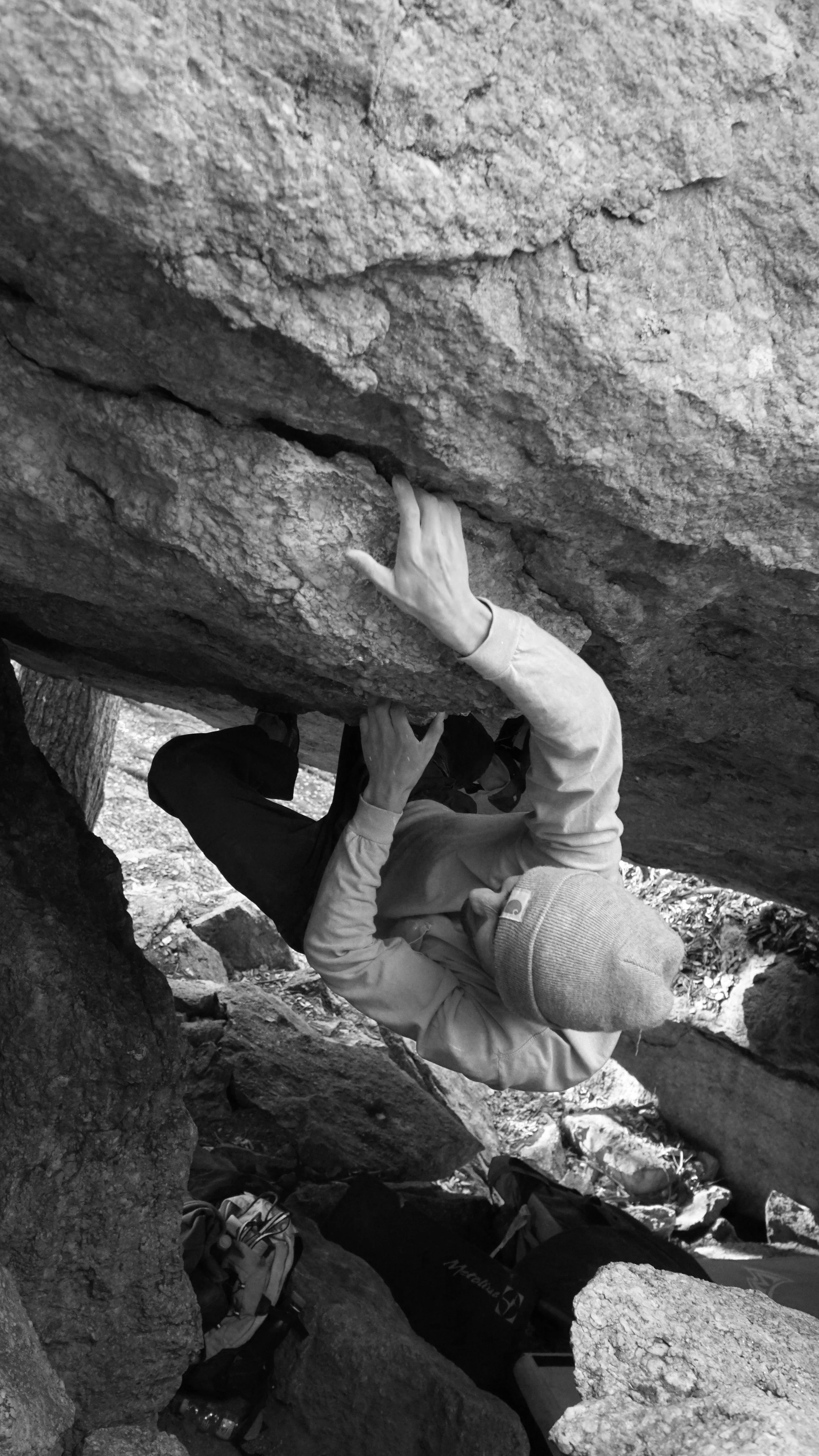 The legendary Godzilla Boulder strikes again! A traverse-linkup, what more could you ask for? Now it just needs to rain every day and well be in the UK . . . Wait, maybe we are?